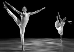 Second on the program was LIFELINE (2002), a duet danced by Niccolò Orsolani and Carolina Rivera, to the peaceful score of Adiemus Variations I-III by Karl Jenkins. The pair wore elegant white costumes, and danced together with the same grace and purity. As indicated by the title, the pair appeared heavily dependent on one another. When not dancing in physical contact – we see angelic lifts and affectionate embraces, emphasized by both balletic and classic modern dance techniques – the two split into the upstage left and right to continue dancing on their own. When apart, Niccolò and Carolina still maintained a balanced, complimentary relationship. Niccolò and Carolina evoked a sort of yin-yang image in my mind, in the way that their two parts make up a coherent whole. This whole is clearly love, as the two are clearly a pair that rely on one another to function both efficiently and with passionate urgency. They appear neither gleeful nor melancholy, simply focused on each other.
