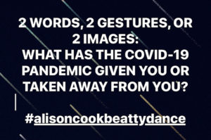 From My Window to Yours is a working title of a Work In Progress based around the COVID-19 pandemic. I gathered the dancers for their first virtual rehearsal. We discussed a question to ask the public. We received many responses from people all over the world.