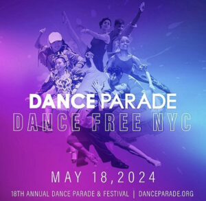 See 10,000 dancers, live bands, and DJs dancing down Broadway 1-4, Multi-Stage Festival in Tompkins Square Park 1-7 pm on May 18th.