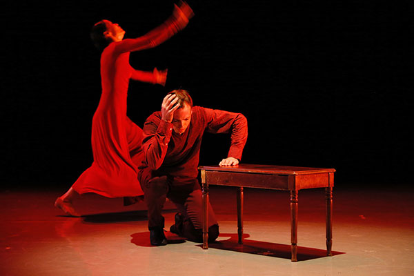While the Bride dances in joy awaiting her lover’s return, the Official confronts the Poet about his insubordination, handing him orders to report to an “education camp”.  Unable to break the news to his beloved, Poet and Bride enjoy a last moment of tenderness. Their happiness is shattered when she discovers the order, and the Official returns to drag the Poet away.